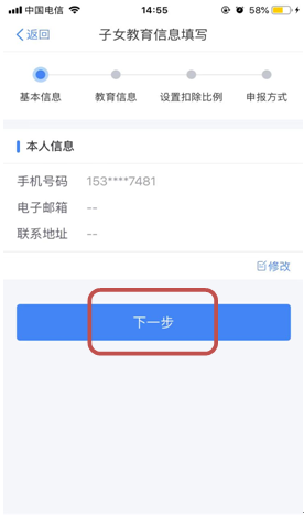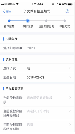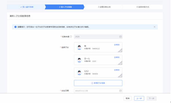 (4)根据实际情况选择和录入子女教育信息完善后点击“下一步”。