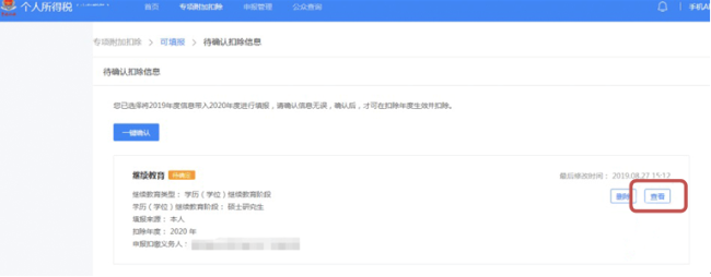 (3)进入“待确认扣除信息”界面,点击“查看”进行修改。