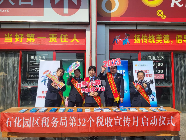 松原石化园区税务局青年服务队青春“税”月展风采,税收宣传进商场。