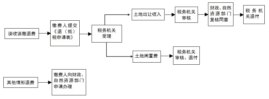 因缴费人误缴、税务机关误收土地出让收入需要退库的,税务机关受理缴费人申请并严格审核后,及时商财政、自然资源部门复核,按规定办理退付手续。其他情形按照财政部门有关退库管理规定办理。