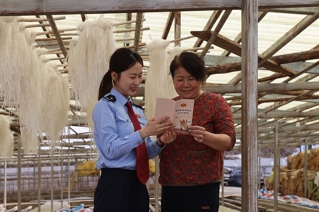 位于吉林省白山市长白县的光源马铃薯专业合作社,以长白山粉条手工制作技艺和独具生产优质红衣马铃薯的地理位置优势,依古法炮制、精华萃取,创建“太阳村粉条”品牌。趁着税收宣传月,税宣团队走进太阳村粉条生产车间走访参观,给合作社带来了最新的惠农政策礼包。