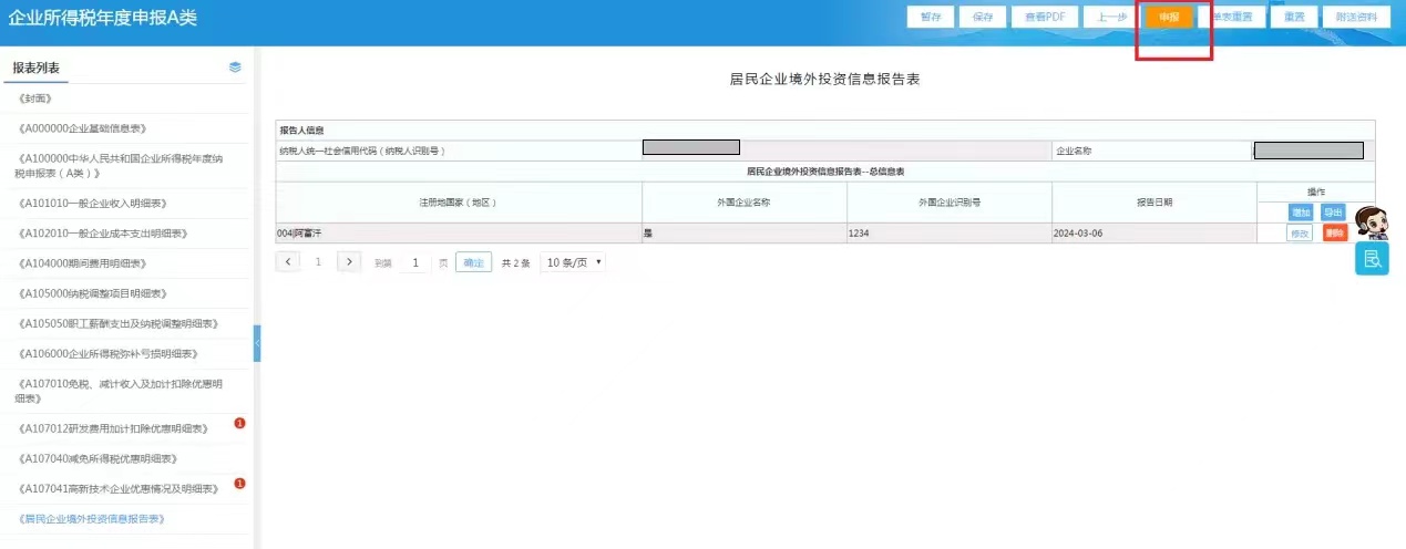 报告人可通过登录电子税务局或办税服务厅进行填报。《报告表》作为企业所得税年度报表的附属报表,填报应与企业所得税汇算清缴申报同时进行。以下为电子税务局申报方法。