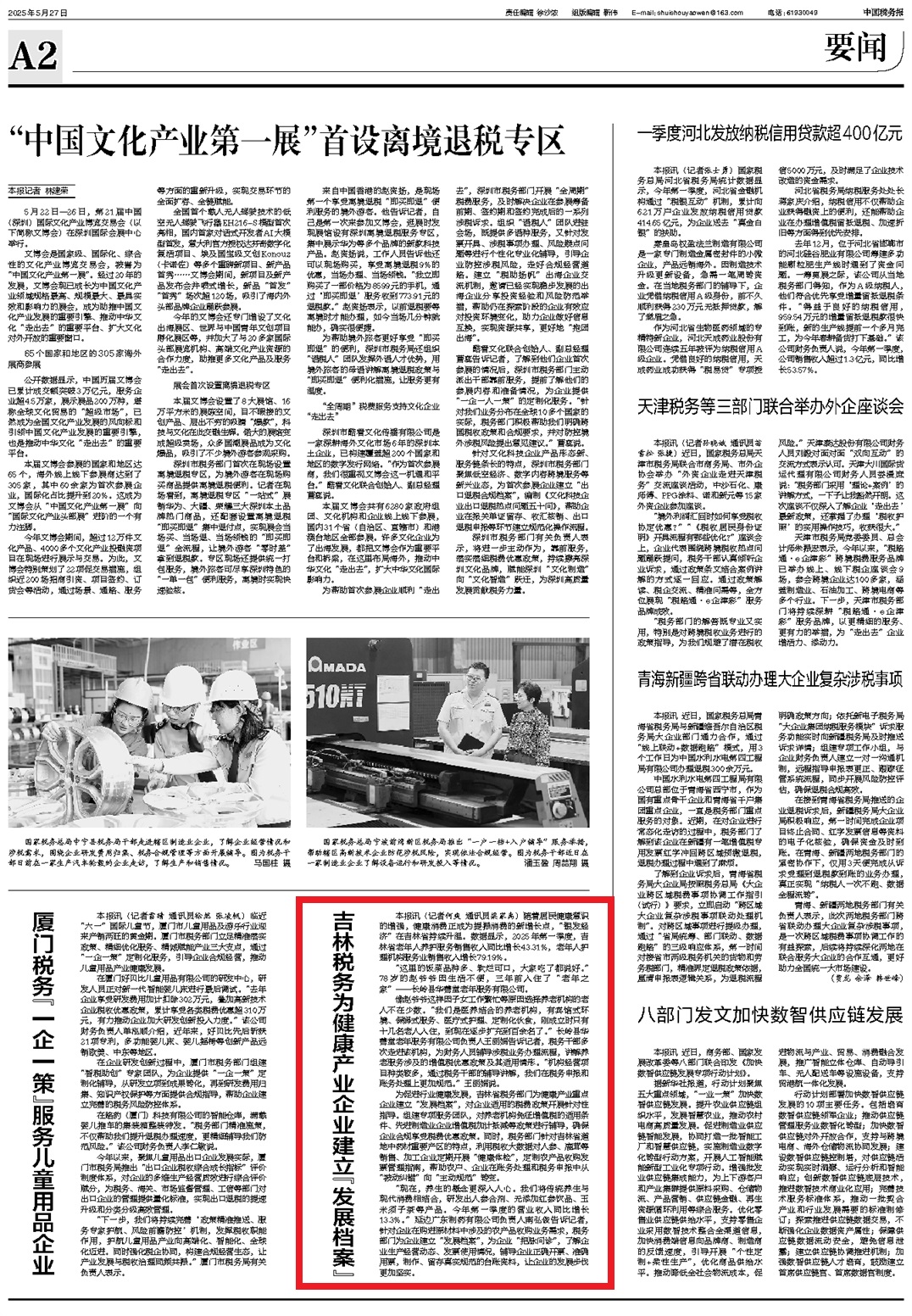 为促进行业健康发展,吉林省税务部门为健康产业重点企业建立“发展档案”,对企业适用的税费政策开展针对性指导。组建专项服务团队,对养老机构免征增值税的适用条件、先进制造业企业增值税加计抵减等政策进行辅导,确保企业合规享受税费优惠政策。同时,税务部门针对吉林省道地中药材重要产区的特点,利用税收大数据对人参、鹿茸等销售、加工企业定期开展“健康体检”,定制农产品收购发票管理指南,帮助农户、企业在账务处理和税务申报中从“被动纠错”向“主动规范”转变。
