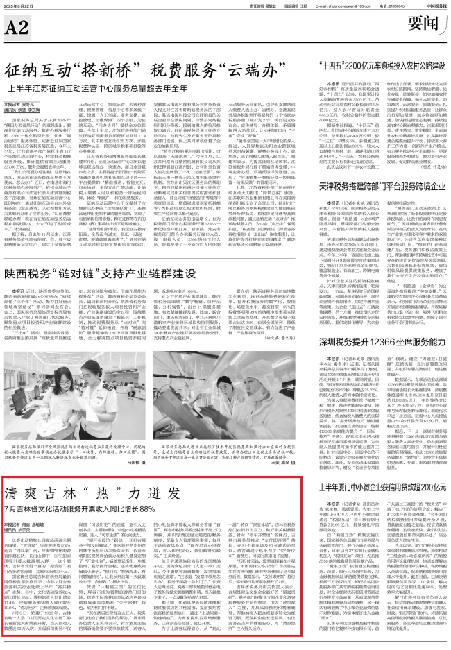 吉林省税务局相关负责人表示,合规经营是文旅企业最好的“留量密码”。税务部门将聚焦文旅企业和游客税费服务方面的需求,加大“政策找人”力度,开展风险预判和精准辅导,帮助纳税人把合规要求转化为经营习惯,既保护企业长远发展,也让游客在吉林消费更安心,为“清凉经济”注入持久活力。